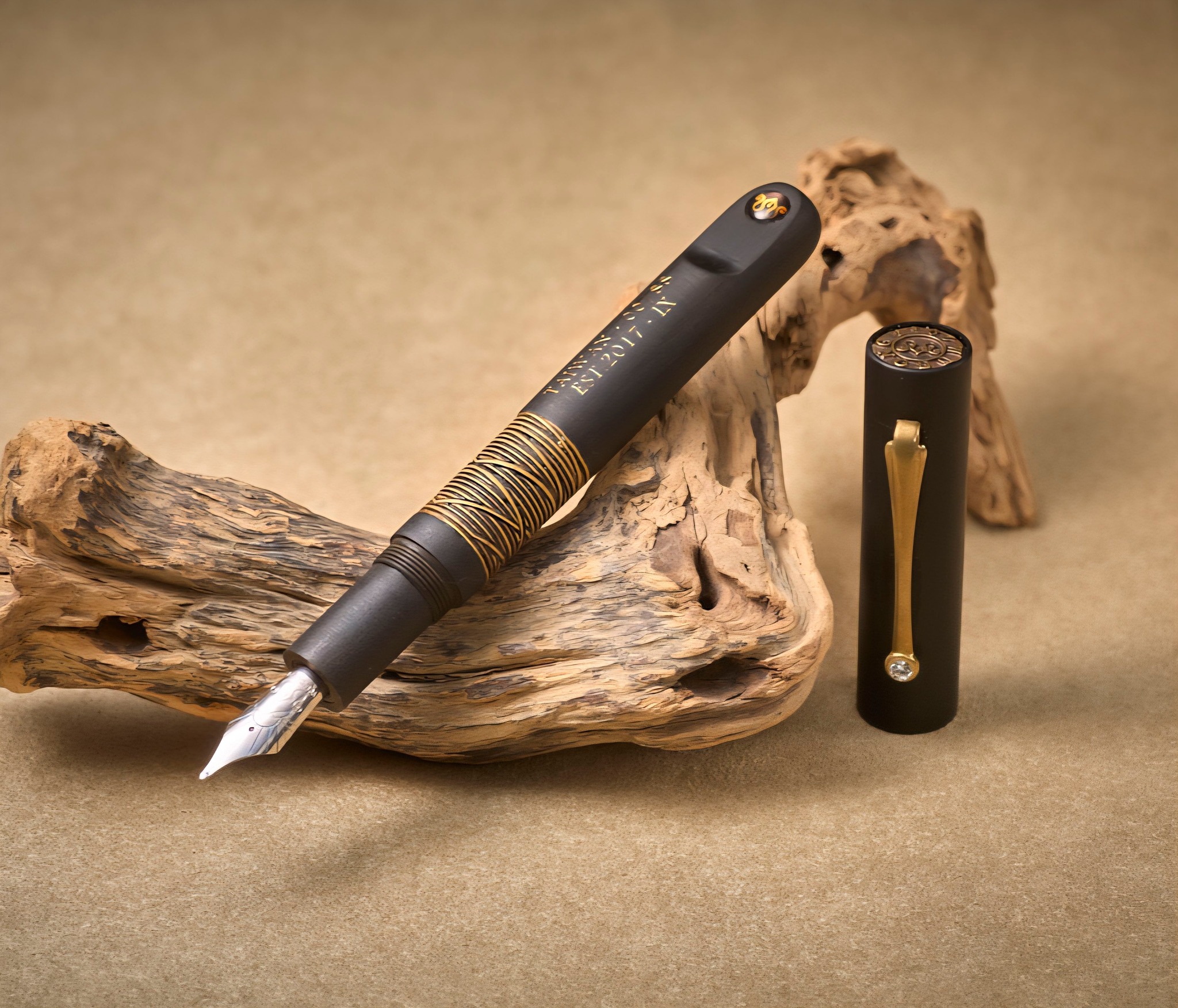 筆桿之上,刻下「TAIWAN」與專屬編號,